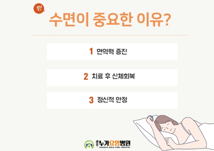 수면은 감정 조절에 중요한 역할을 하며, 우울증과 같은 정신적 질환의 위험을 줄이는 데 기여합니다.