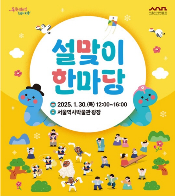 서울역사박물관은 2025년 설 연휴를 맞아 다채로운 행사를 개최합니다! 본 행사는 1월 30일 오후 12시부터 4시까지 서울역사박물관 광장에서 개최되며, 공연마당에서는 사물놀이 '판굿'과 사자놀이를 포함 체험마당 키링 만들기, 토퍼 만들기 등이 진행됩니다. 또한, 서울역사박물관 외 분관 서울우리소리박물관과 공평도시유적전시관도 설 연휴 이벤트가 진행됩니다. 서울우리소리박물관은 전통놀이 체험을, 공평도시유적전시관은 인스타그램 인증 이벤트 등을 열 예정이니, 많은 분들의 관심과 참여 부탁드립니다!