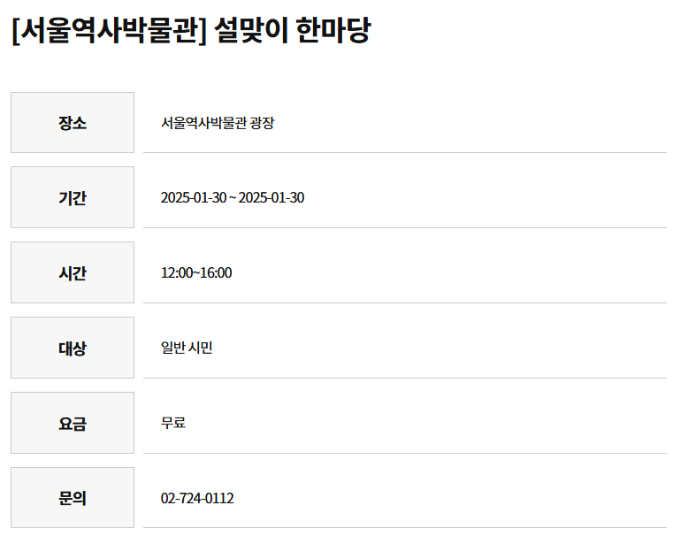 2025년 설 연휴 문화행사꼭 가봐야 할 내 주변 문화행사